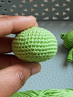 Slip stitch in the next sc, cut yarn and fasten off leaving a long tail to sew. Stuff the body. Sew the head onto the body.