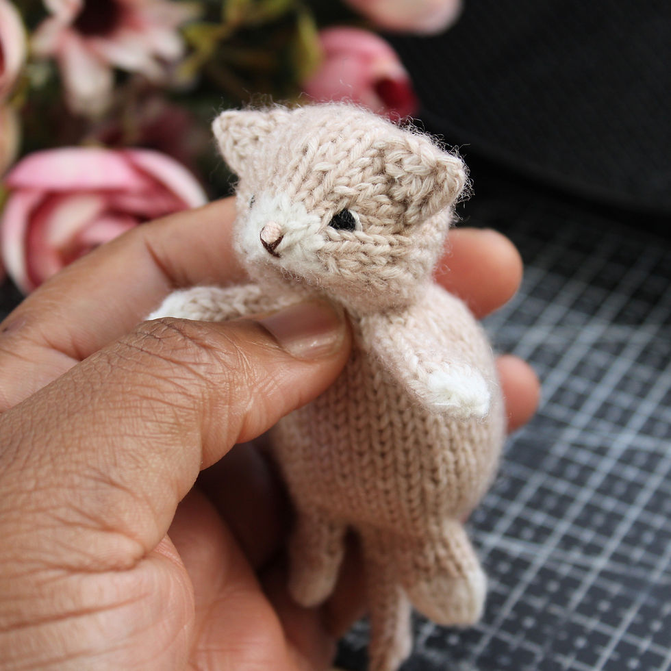 This Hand knitted kitten in Black, is handmade by me using 78% cotton, 22% acrylic blend yarn and stuffed with polyester craft filling which complies with British standards EN71, BS1425, BS5852. Eyes are embroidered.